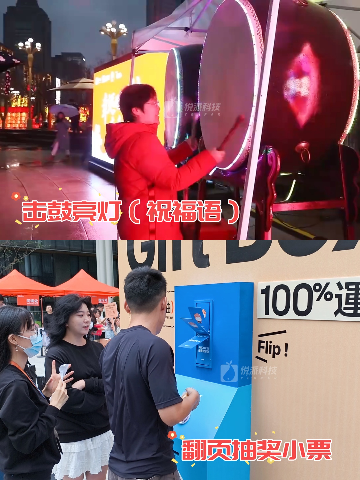将传统击鼓与现代视觉震撼结合。每一次敲击,员工都能亲手点亮大屏祝福,将个人力量化为璀璨画面。它用强烈的视听反馈营造出满满的仪式感,能瞬间点燃全场,凝聚团队向心力。