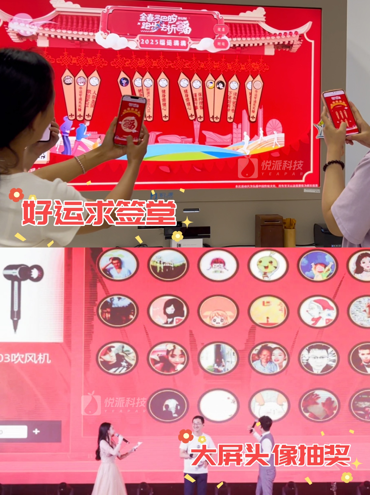 将传统祈福与现代科技巧妙结合。员工通过摇晃手机参与,让个人互动化为大屏上的视觉惊喜。它不仅创造了独特的仪式感,更承载了大家对未来的美好期盼,能有效点燃全场氛围,提升情感共鸣。
