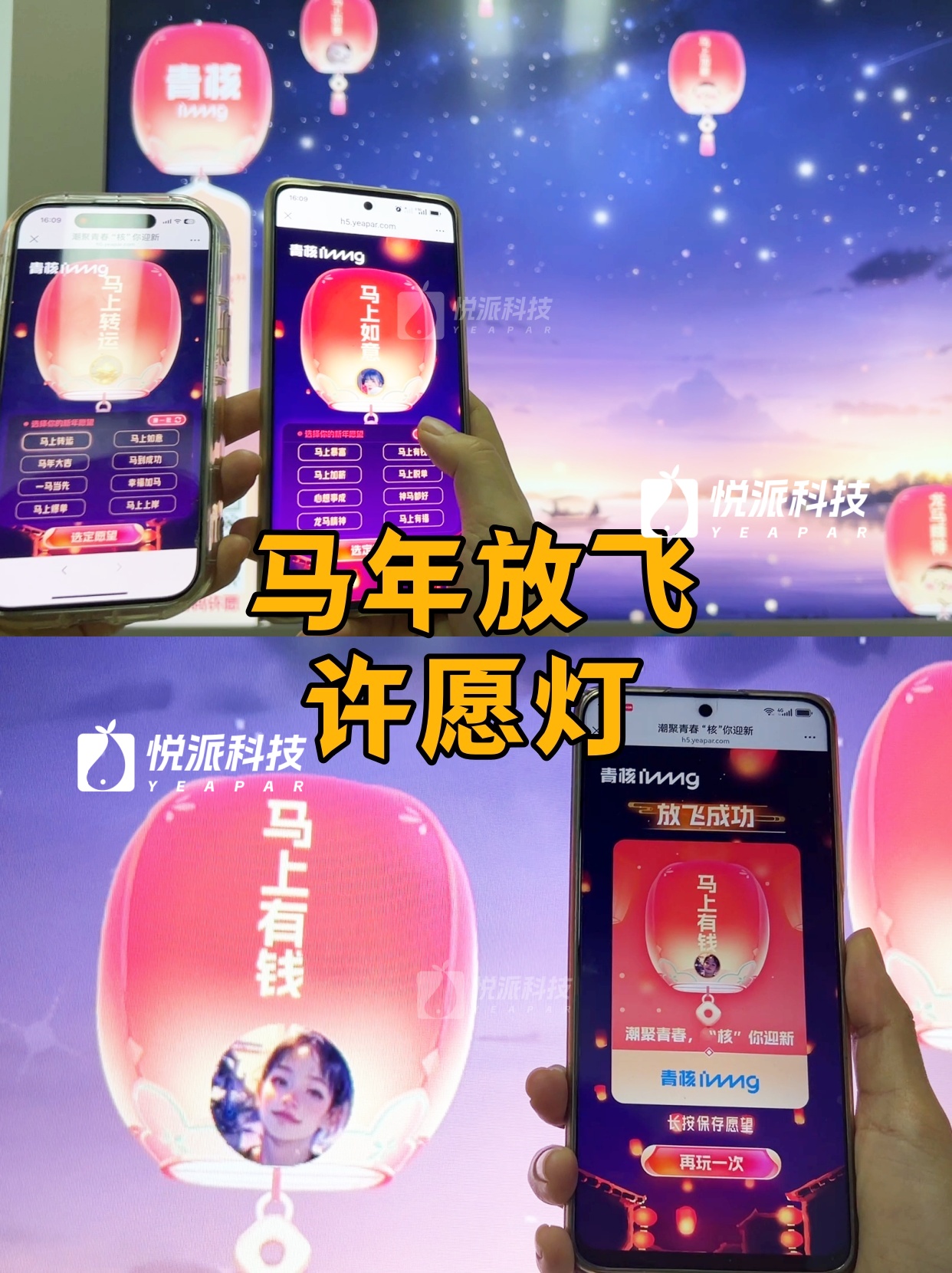 参与者扫码输入心愿,向上推手即可将个人许愿灯汇入大屏的璀璨星河。此互动将传统祈福仪式数字化、场景化,操作简单却极具仪式感与视觉震撼力,能有效提升活动参与度,营造集体共鸣的难忘瞬间。