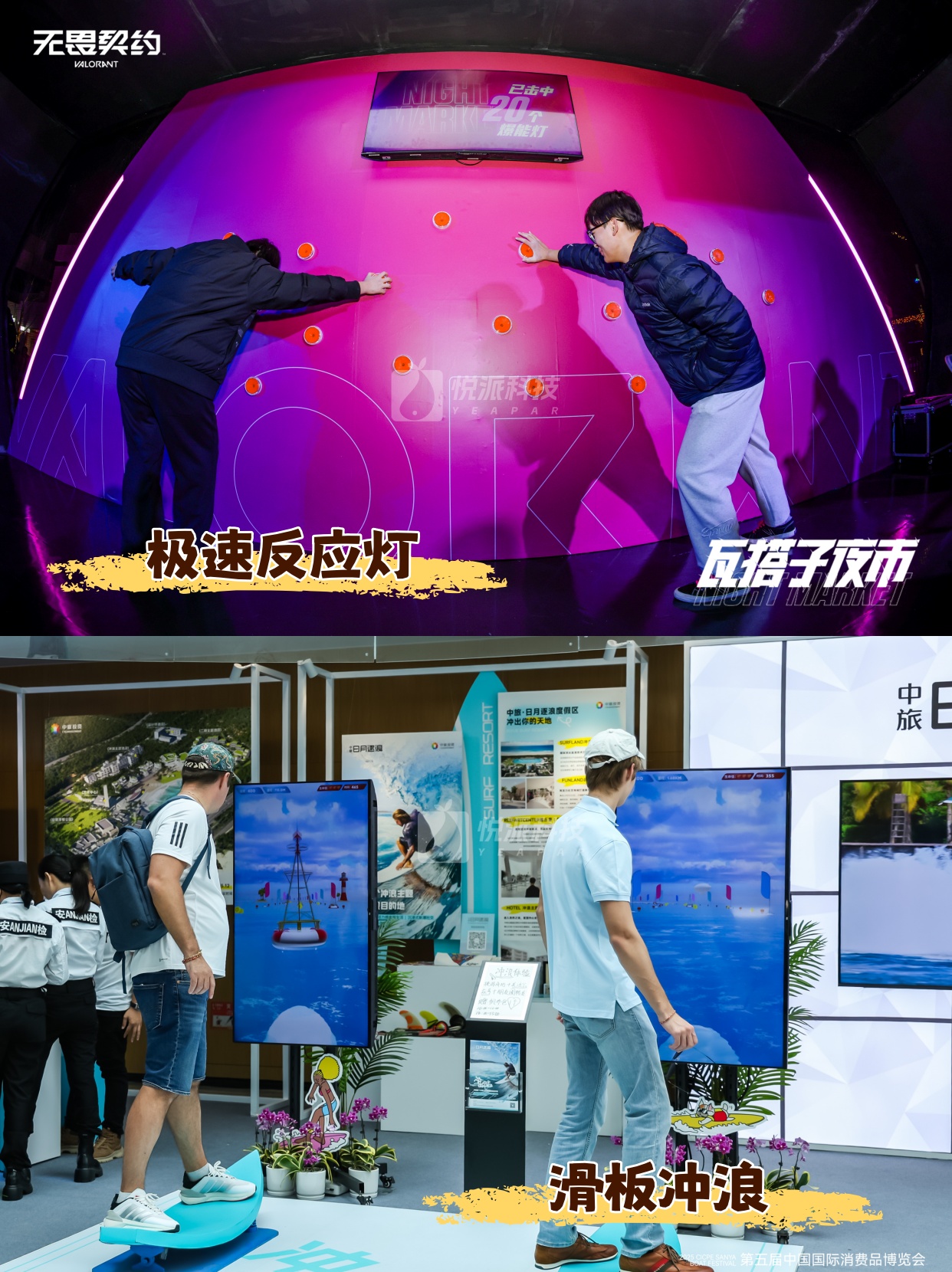 身体摇摆操控滑板在虚拟海浪中前行,拾取道具获取惊喜彩蛋。用互动将极限运动转化为大众娱乐,以潮酷姿态自然传递品牌活力,为活动创造沉浸式打卡热点。
