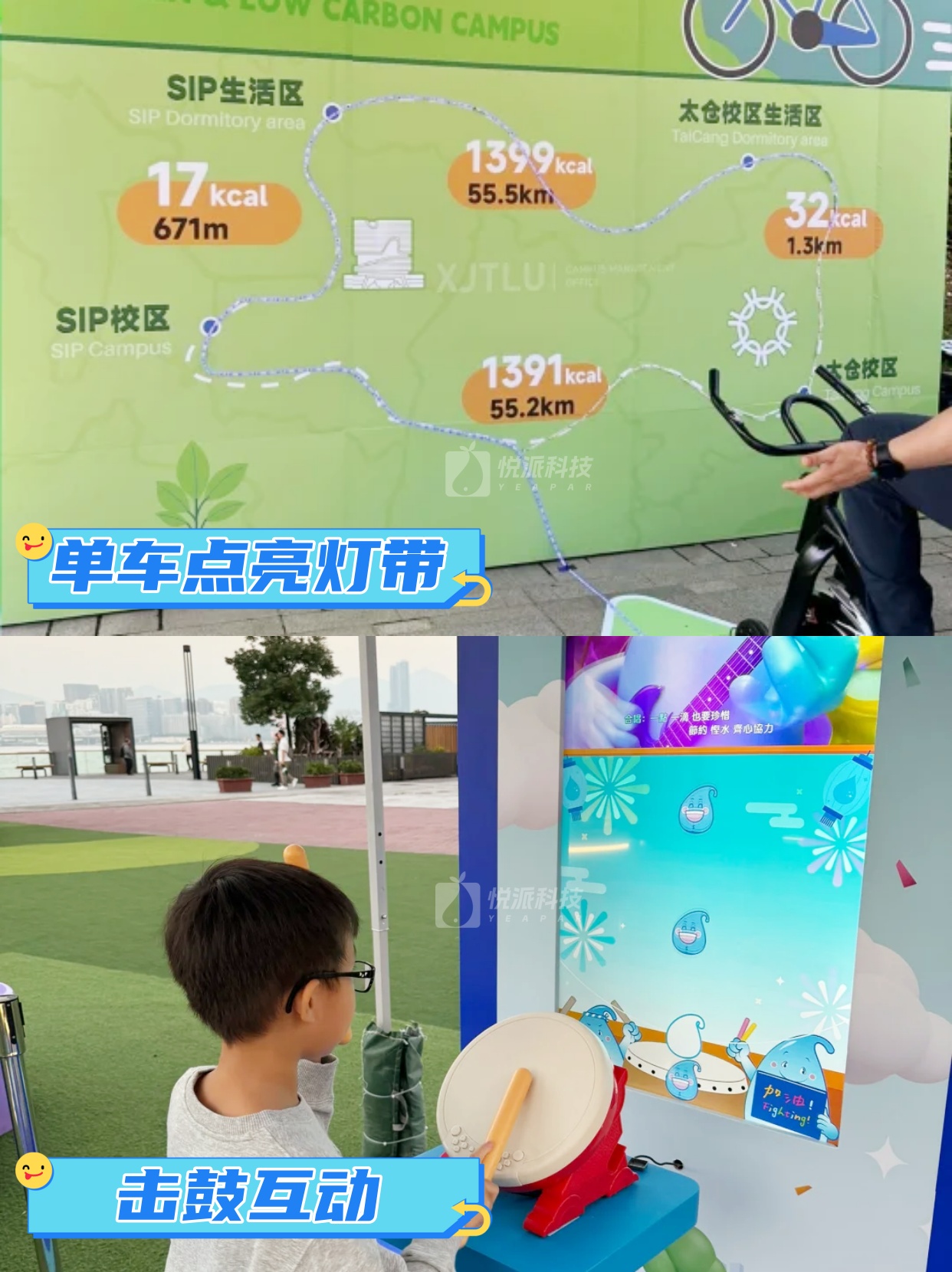参与者踩动单车,速度越快大屏画面越生动呈现定制化的绿色城市或自然风光,用沉浸式骑行带人“云游”低碳场景,将运动能量转化为视觉体验,让环保宣教从单向观看升级为身心同步参与,既传递绿色出行理念,又成为极具感染力的打卡装置。