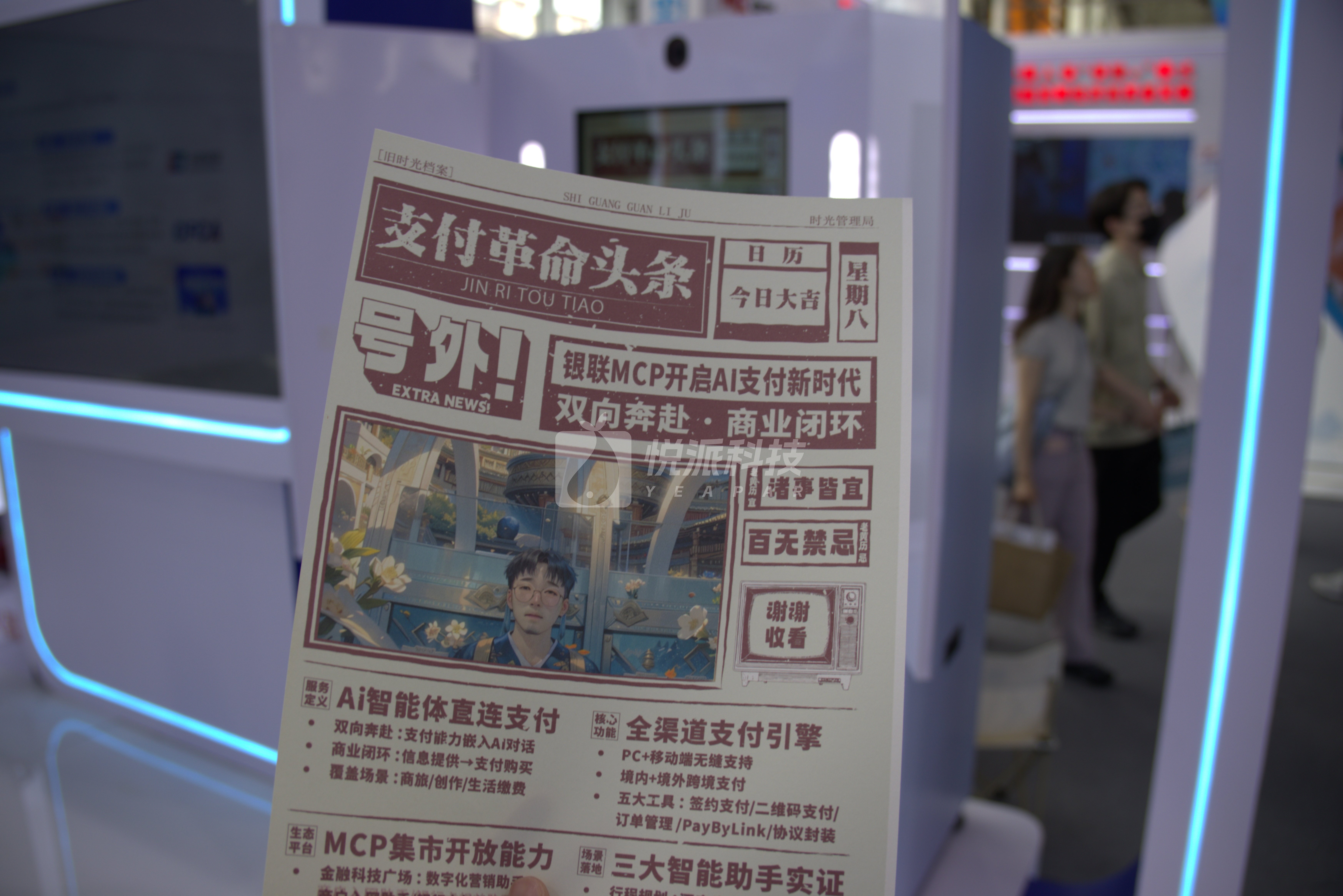 观众拍照后AI自动生成个性化新闻头版并即时印刷。将科技与人文巧妙融合,既创造了独特的参会记忆,更彰显了数字技术对现代服务贸易的创新赋能与生动诠释。