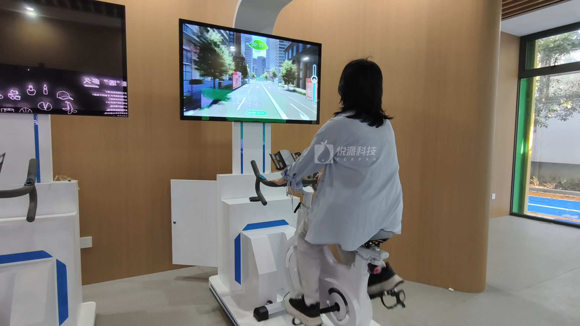 这款互动装置,让市民通过骑行实体单车,通过大屏,在清新的城市风光中畅行。