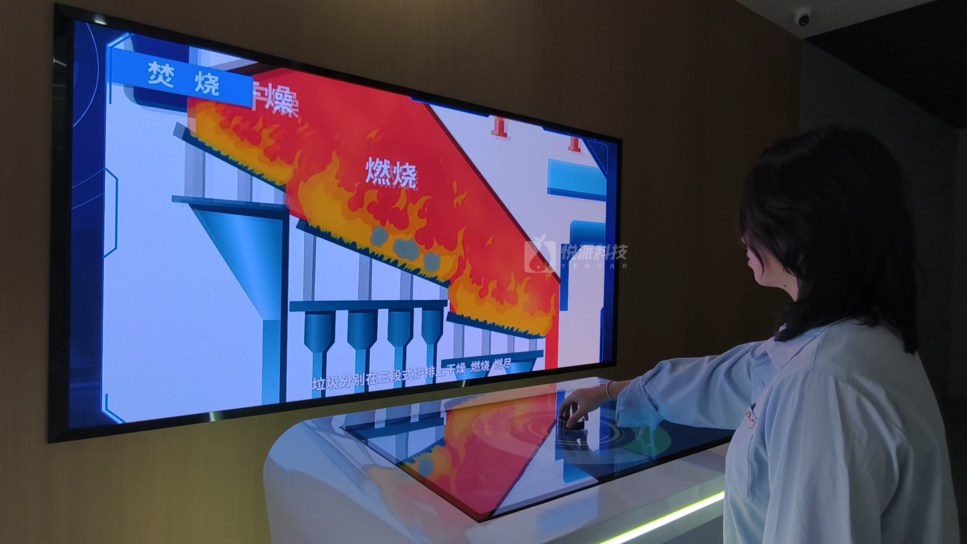 垃圾焚烧发电工艺流程双屏互动桌