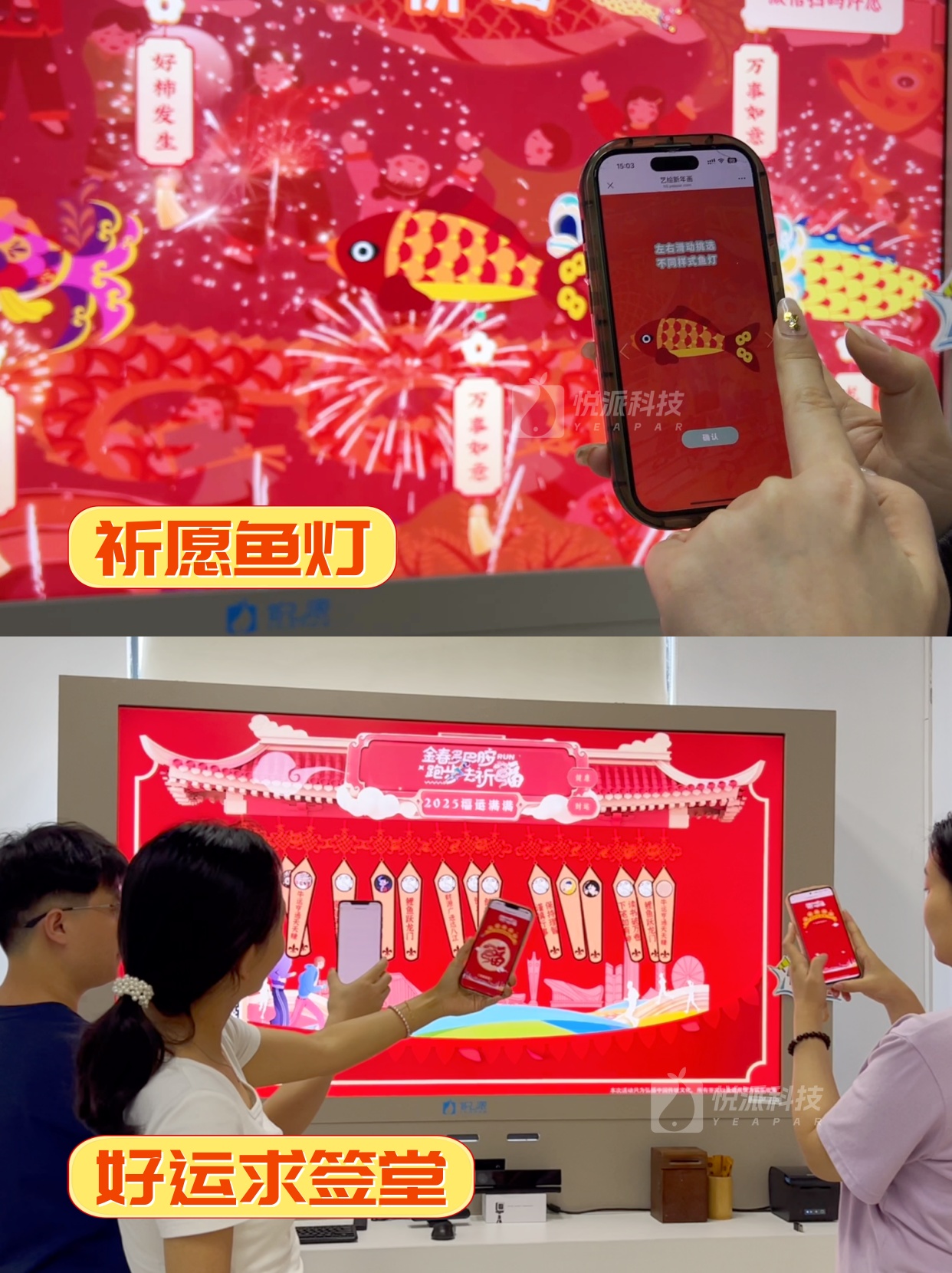 将手机变为签筒,通过“摇一摇”的直觉动作降低参与门槛。当祈福签于大屏华丽绽放时,个人的祈愿瞬间升华为震撼的视觉盛宴,品牌也借此完成从互动发起者到美好祝愿承载者的角色升华。