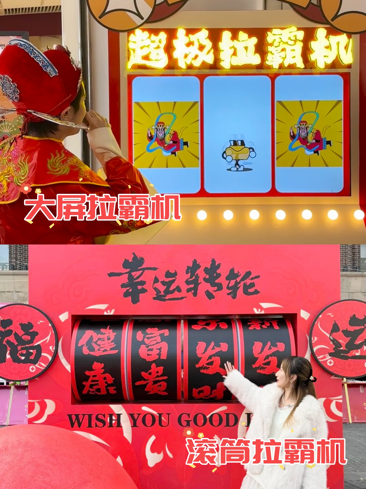 完美复刻了拉霸机的经典刺激。员工亲手拉动摇杆,将个人运气转化为大屏上滚动的视觉盛宴。它不仅以强烈的仪式感和悬念点燃全场气氛,更让中奖瞬间成为全场瞩目的高光时刻,极大提升参与感。