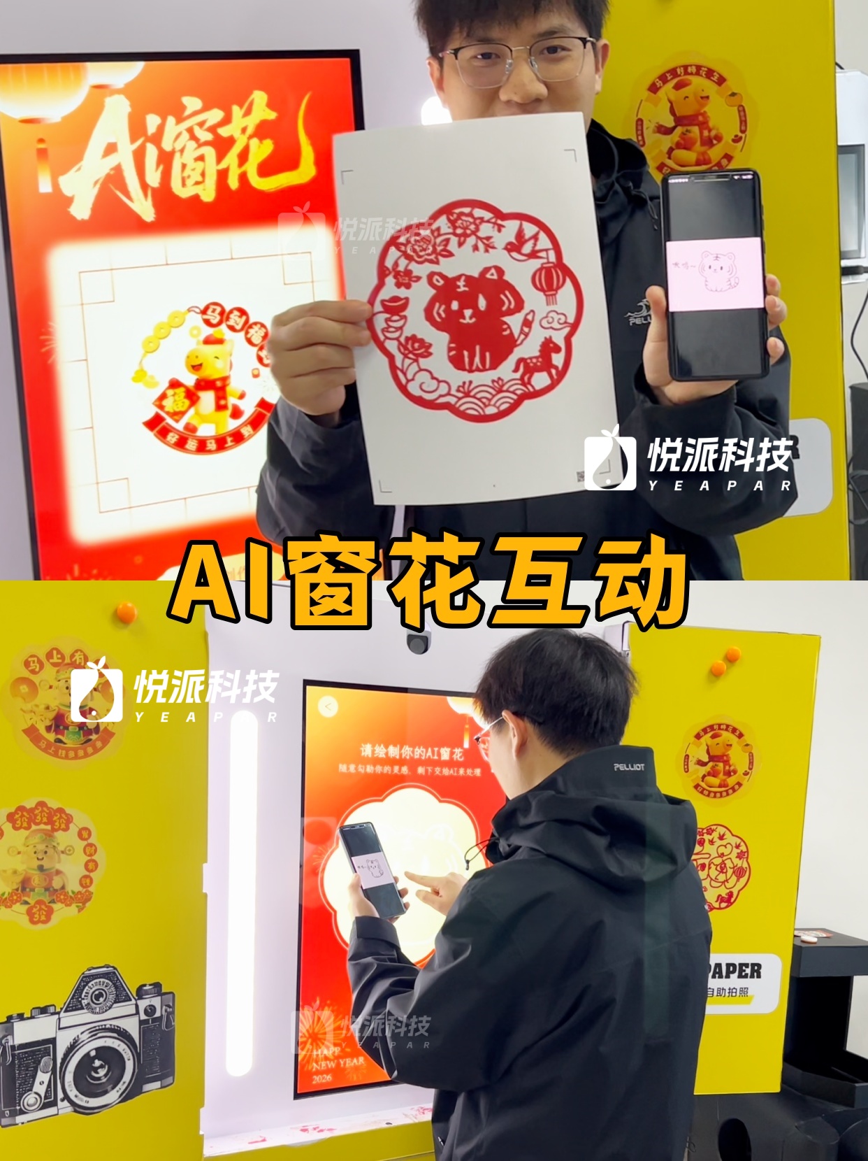 参与者现场绘制/选择图案,AI即刻智能识别并生成精美窗花,快速打印成纪念品。该互动以科技赋能传统年俗,体验感强,能快速聚集人气,营造节日氛围,创造高传播度的社交话题和情感记忆。