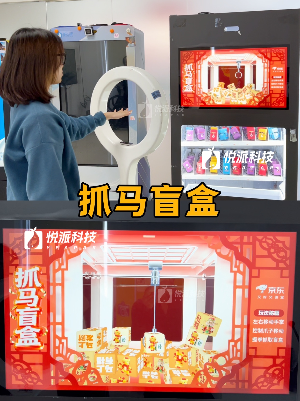 参与者通过手势识别(挥手移动、握拳抓取),操控虚拟抓钩抓取融入品牌元素的定制道具,成功即可触发实体盲盒掉落。此互动将潮玩体验与品牌深度结合,以新奇的手势交互吸引年轻人,通过即时实物奖励和高互动性,高效增强品牌记忆点与参与热情,是制造活动爆点的利器。