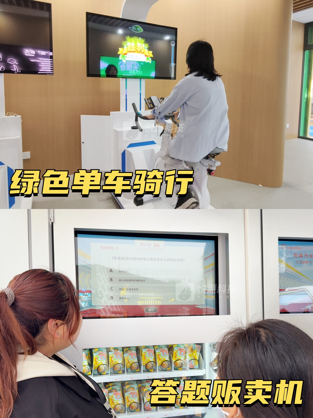观众蹬踏单车即唤醒大屏沉浸式骑行画面,实时跳动的卡路里与里程数据让每一分消耗都清晰可见。将枯燥的环保倡导转化为身体力行的互动仪式,用真实的体能付出量化绿色贡献,使低碳理念在汗水与数据共振中深入人心。