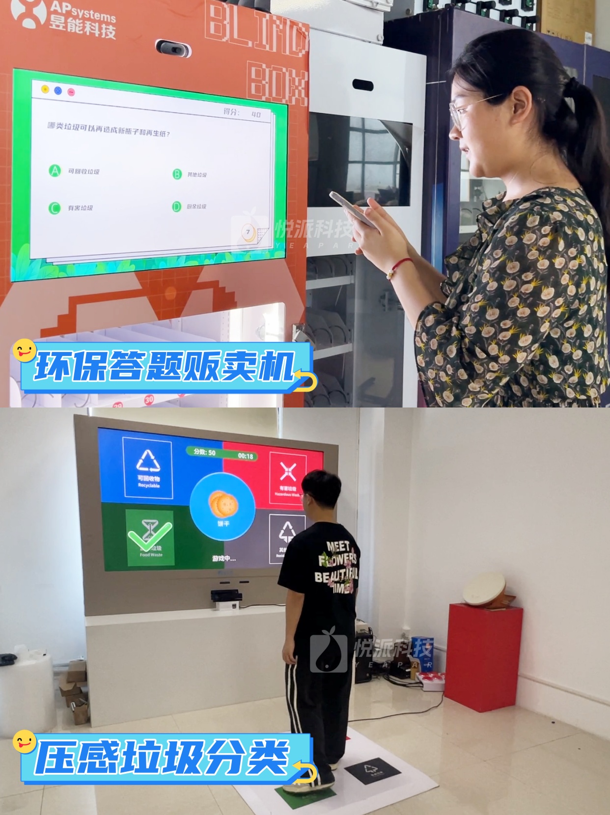 参与者根据大屏快速掉落的垃圾图像,按压对应分类按键,用竞技感点燃参与热情,将垃圾分类知识融入游戏,在节奏中强化记忆点,同时营造围观氛围,成为活动现场的天然引流焦点。