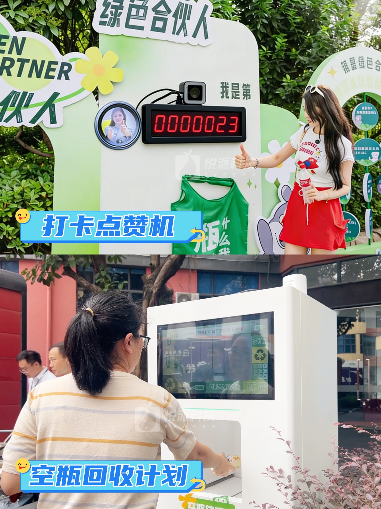 参与者面对镜头竖起大拇指,系统精准识别手势后计数器实时跳动累计,并随机吐出一张权益小票作为回馈。用无接触的点赞手势完成互动打卡,将“为环保点赞”的抽象态度转化为可量化、可传播的集体行动,既降低参与门槛,又为活动自然积累社交热度与正向声量。